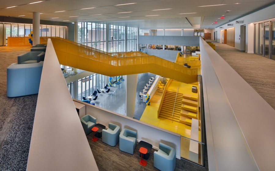 The NC A&T State University New Student Center is a 150,000 SF educational facility situated in the heart of the campus. This facility is often referred to as the students’ “living room.” The innovative and functional building hosts a range of student lounge areas, a multitude of study and meeting spaces, 6 food venues, a convenient store, student bookstore, post office, a formal ballroom, several large multipurpose rooms and range of student organization and administrative suites.